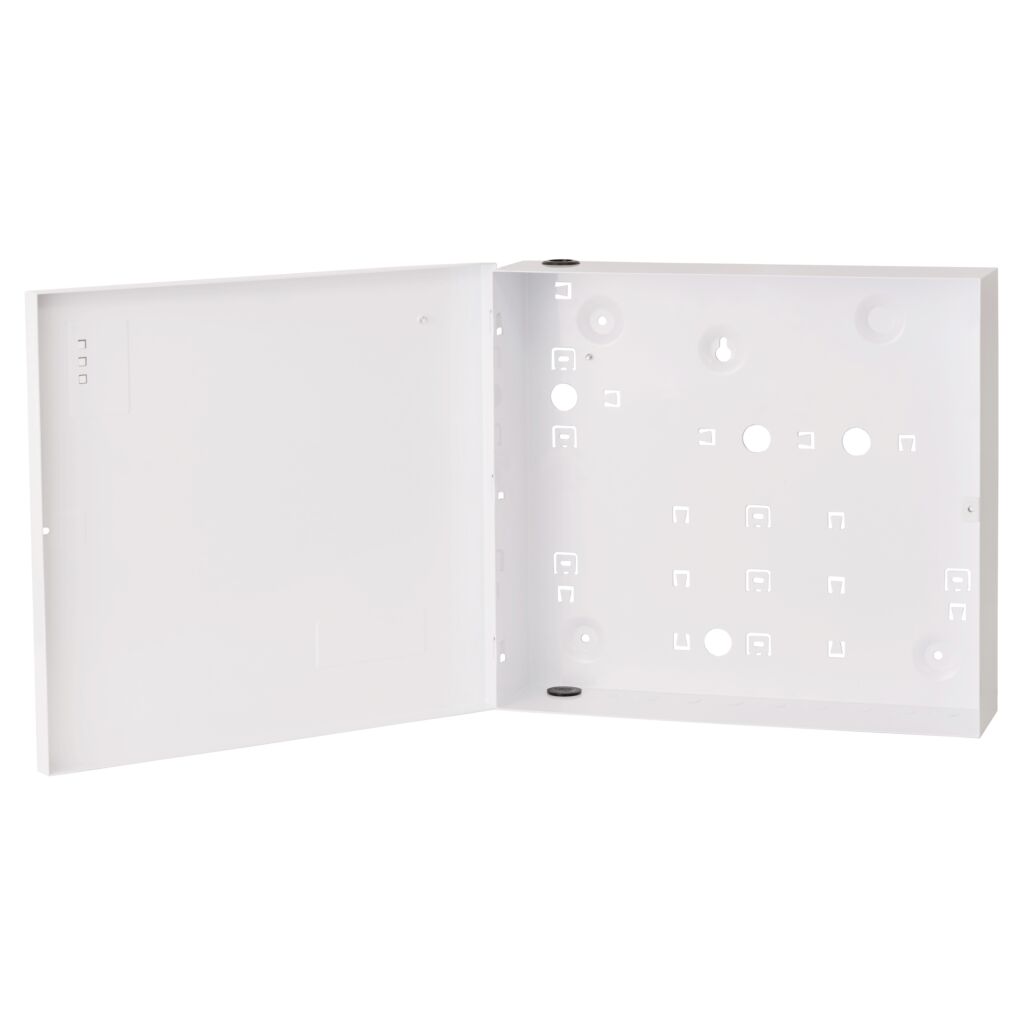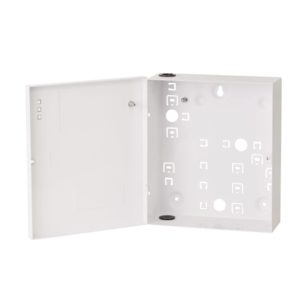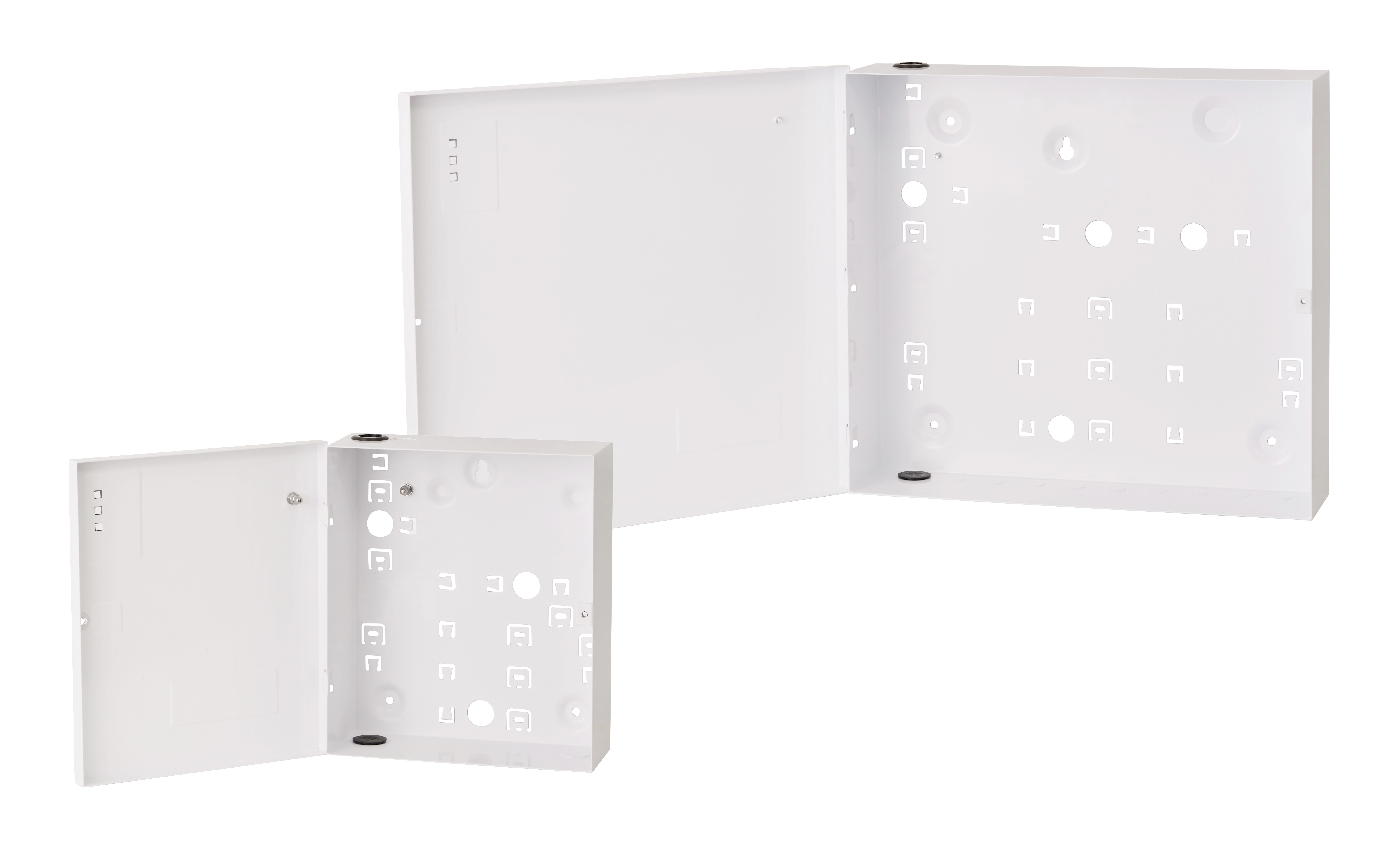 Deze behuizingen kunnen voor verschillende toepassingen worden gebruikt. De behuizingen zijn gemaakt van staal en zijn wit gespoten. Voorzien van diverse uitbreekpoorten en gaten. Het deksel kan worden afgesloten met een schroef.