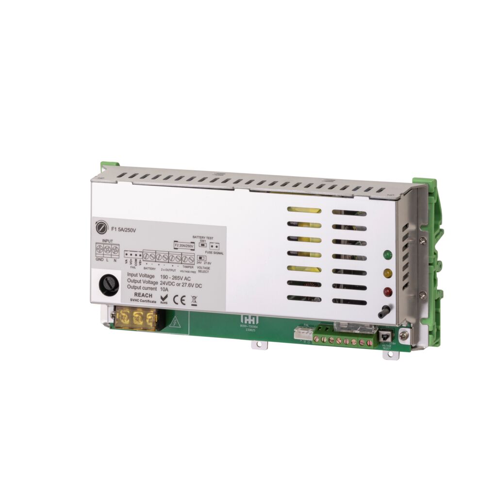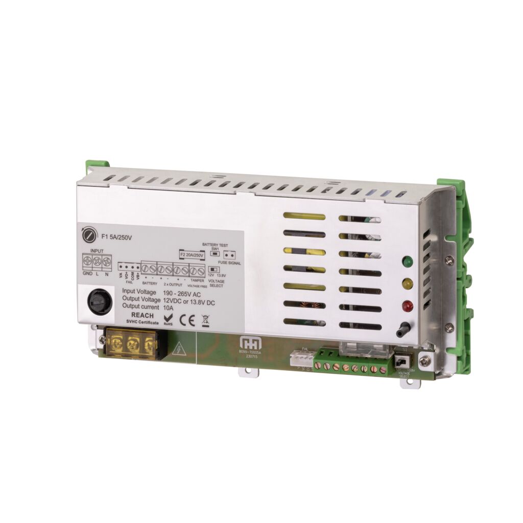 Deze schakelende voedingen transformeren 230V naar 12V= of 24V=, leveren 1,5 ampère, 5 ampère of 10 ampère en zijn gestabiliseerd. Dit zorgt voor een constante uitgangsspanning. Voorzien van LED indicatie, aansluiting voor een accu (noodstroomvoorziening), sabotagecontact en keuzeschakelaar voor 12V of 13,8V bij de 12V modellen en bij de 24V modellen een keuzeschakelaar voor 24V of 27,6V. Keuze uit een model in een plaatstalen kast of losse unit met optioneel te gebruiken DIN rail adapters. Bij het model in plaatstalen kast wordt een 1,5 meter lange randaarde netsnoer met haakse stekker meegeleverd. Optioneel te leveren met een print voor aansluiting op de brandmeldcentrale. Voor het 5 ampère en 10 ampère model is optioneel een print te leveren voor het signaleren van de voeding en de accu. Deze print is voorzien van 2 potentiaalvrije relaisuitgangen. Voor het 10 ampère model is optioneel ook nog een print met 5 x 1A en 5 x 2A gezekerde uitgangen te leveren.