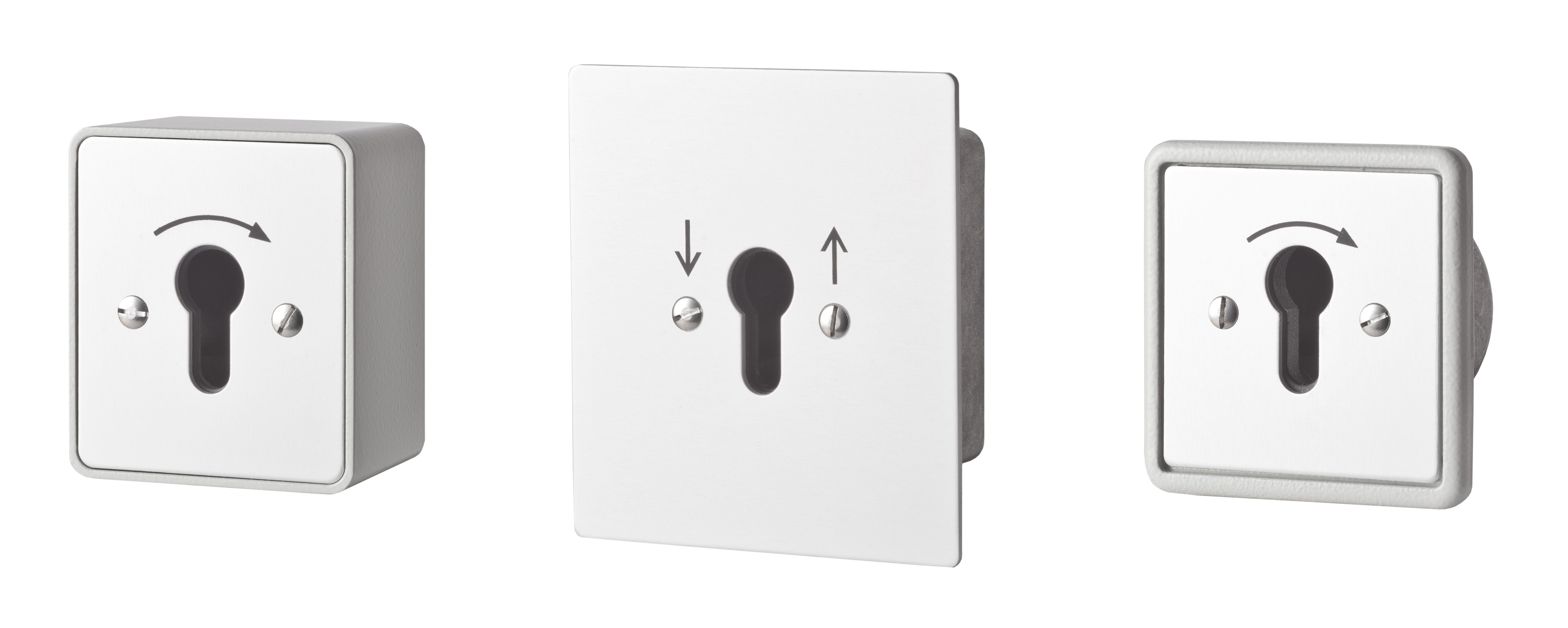Deze sleutelschakelaars zijn geschikt voor het schakelen van elektrische vergrendelingen, rolluiken of andere toepassingen. De schakelaar kan worden geleverd met pulschakelaar met maakcontact naar één of twee zijden. Ook is er keuze uit een opbouwuitvoering, rechthoekige of ronde inbouwuitvoering. Zowel binnen als buiten toe te passen en optioneel is de frontplaat van bedrijfsgegevens te voorzien.