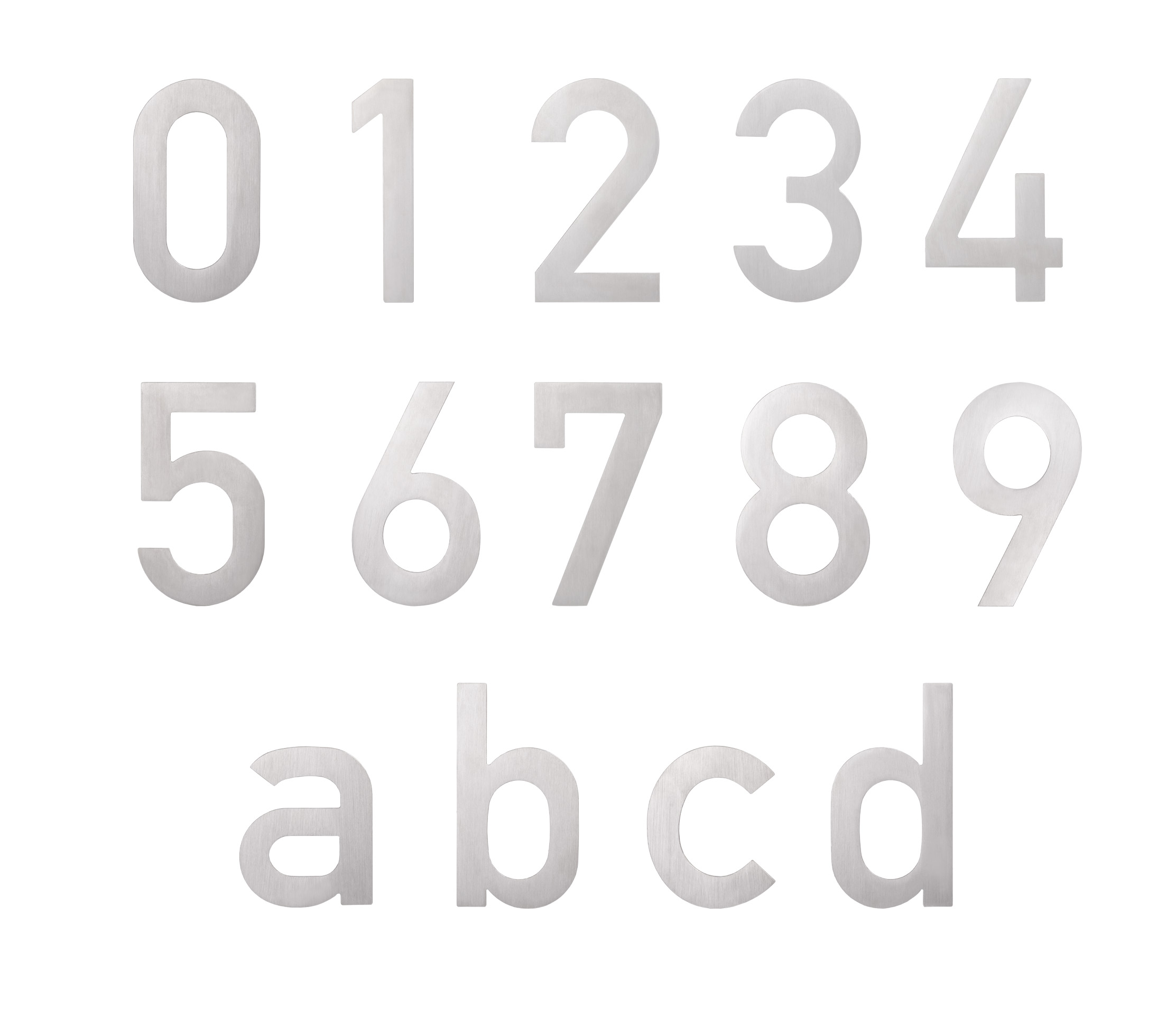 Deze huisnummers en letters zijn uitgevoerd in mat geborsteld roestvast staal en voorzien van onzichtbare schroefbevestiging. Er is keuze uit de nummers 0 t/m 9 en de letters a t/m d in een hoogte van 200 mm.