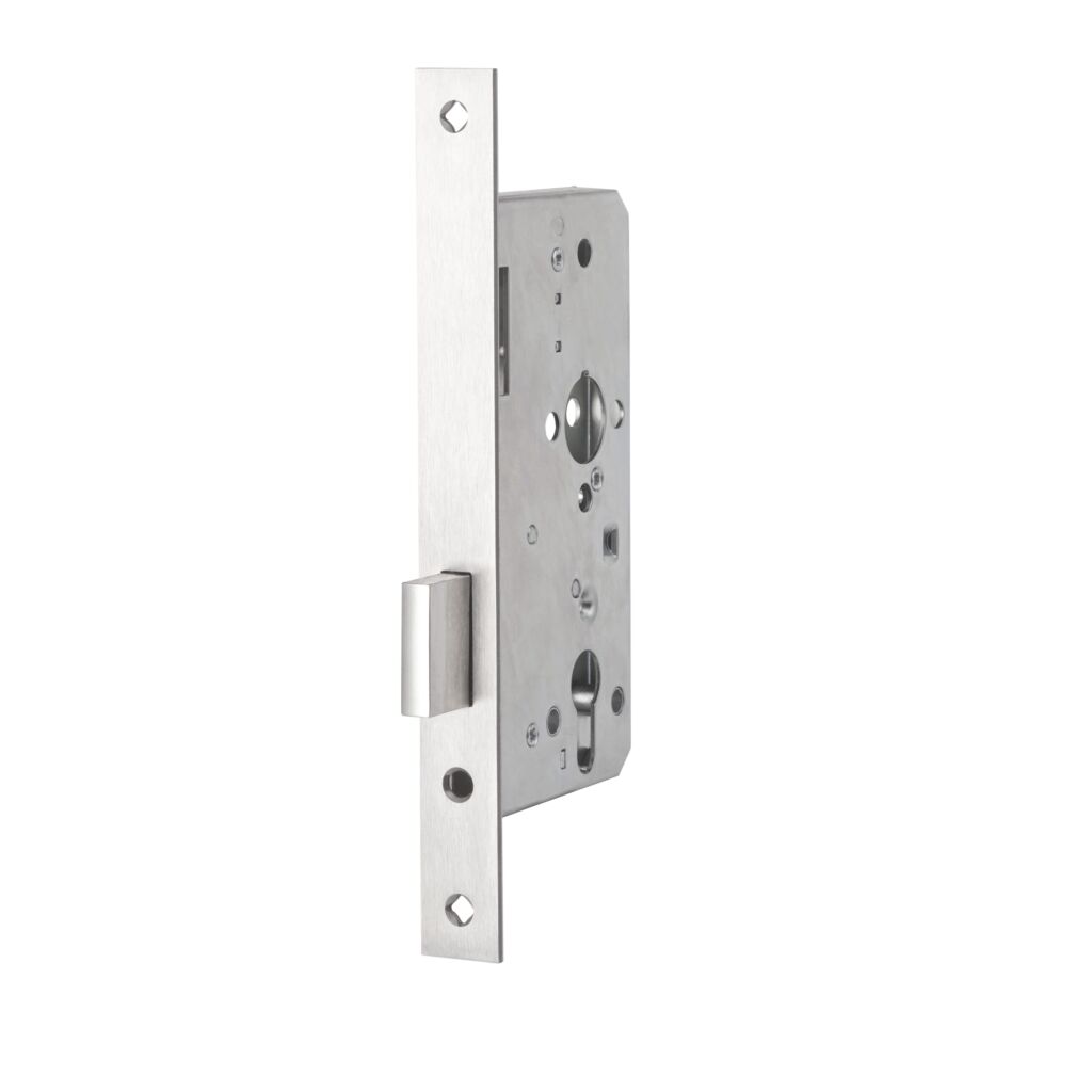 Deze insteek projectsloten zijn uitermate geschikt voor intensief gebruik in de utiliteitsbouw. Alle modellen zijn geproduceerd volgens DIN 18251 klasse 3 en voldoen ruimschoots aan de eisen volgens DIN EN 12209 met betrekking tot het bedieningsgemak, mechanische werking en levensduur. De vernikkelde nachtschoten en een gesloten verzinkte slotkast verzekeren een lange en storingsvrije levensduur. Deze insteeksloten zijn leverbaar voor stompe deuren en/of opdekdeuren met een roestvast stalen voorplaat van 20 of 24 mm breed. Op cruciale punten zijn de sloten voorzien van geluiddempende kunststof buffers.