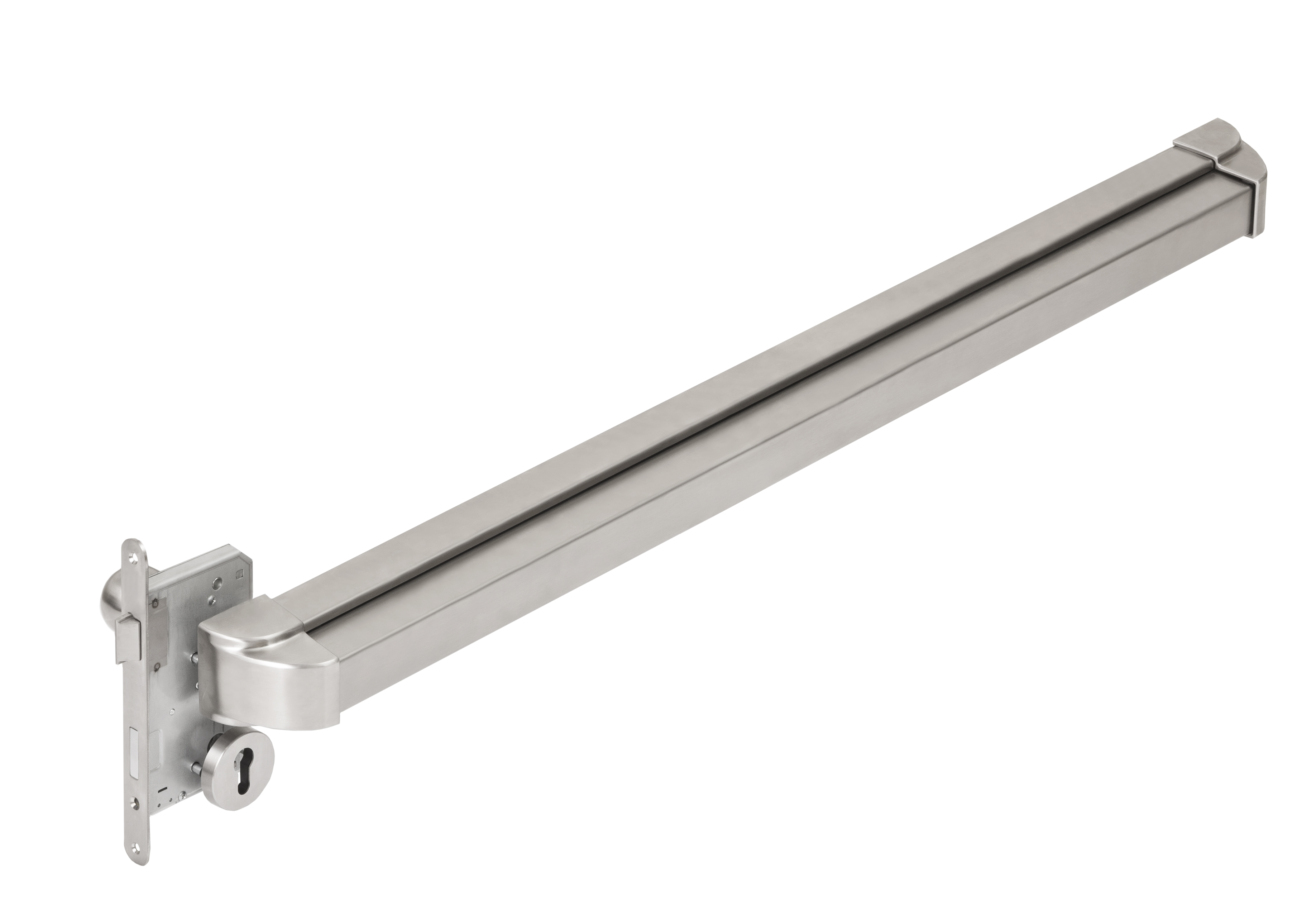 Het type ruimte en het gebruik van het gebouw zijn bepalend bij het kiezen van de juiste vluchtwegtechniek. De Europese normen DIN EN 179 en DIN EN 1125 bepalen de inrichting van nooduitgangen en vluchtdeuren. Paniekdeurconcepten met een horizontale balkbediening conform DIN EN 1125 zijn bedoeld voor gebruik in gebouwen met publieke ruimtes. Onze paniekdeurconcepten conform DIN EN 1125 zorgen ervoor dat personen in paniek en niet vertrouwd zijn met de functies van de deur het gebouw altijd veilig kunnen verlaten. Deze set bestaat uit een mechanisch slot met paniekfunctie E, knopbeslag, paniekbalk met balkbediening en alle benodigde onderdelen. Het geheel is geschikt voor een enkele houten deur en is geschikt voor brand- en rookwerende deuren.