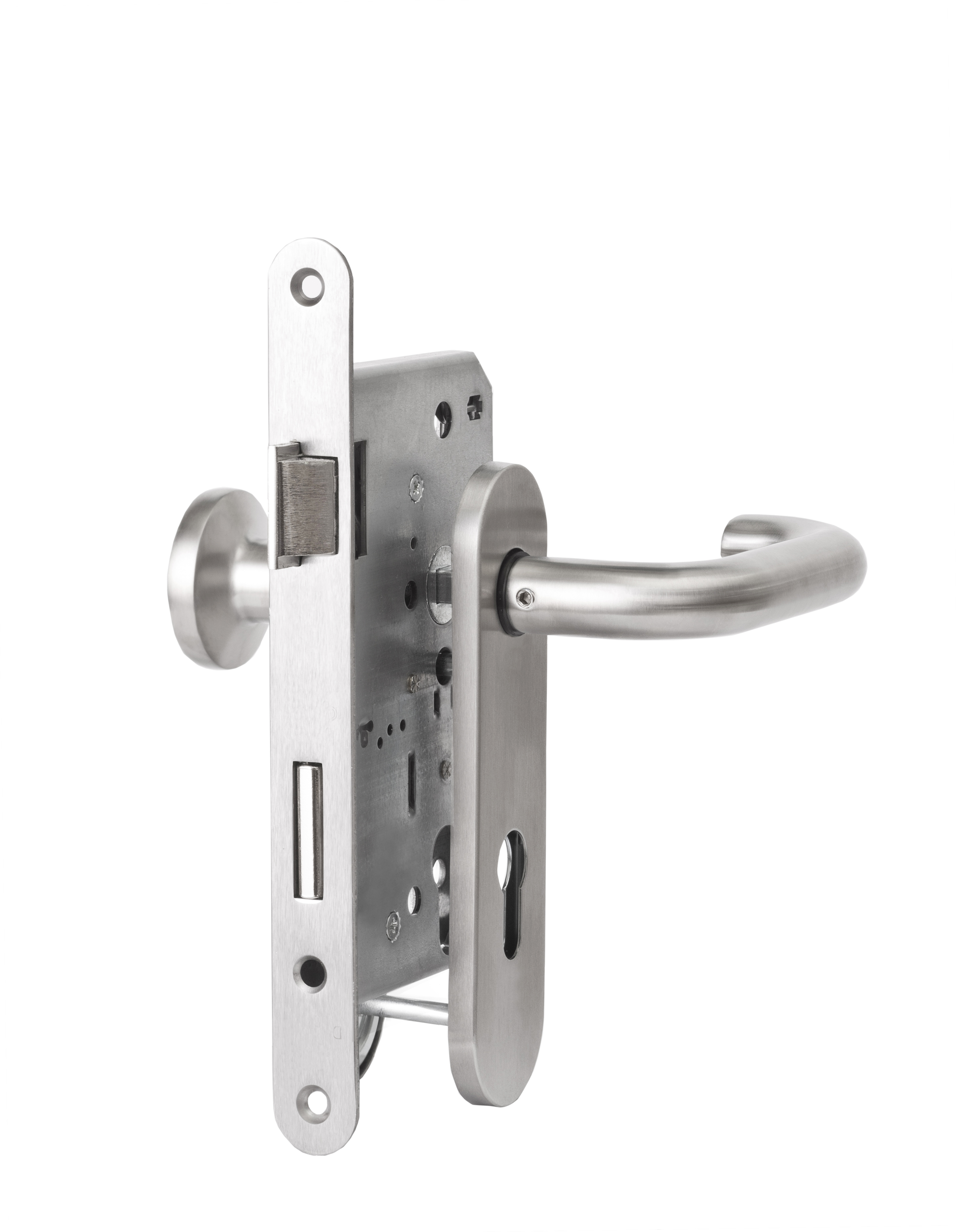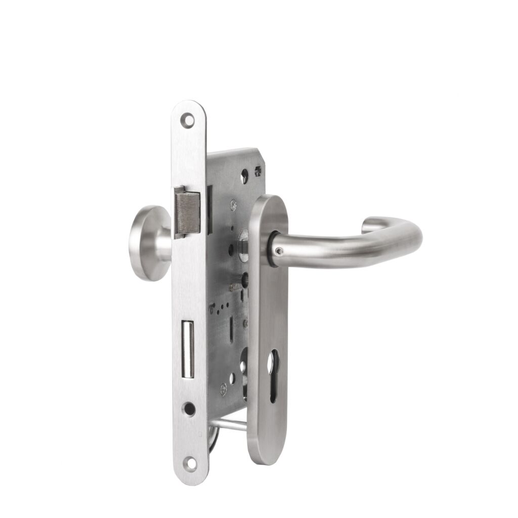 - Voorzien van mechanisch slot met doornmaat 65 mm, PC 72 mm en een afgeronde voorplaat van 24 mm
