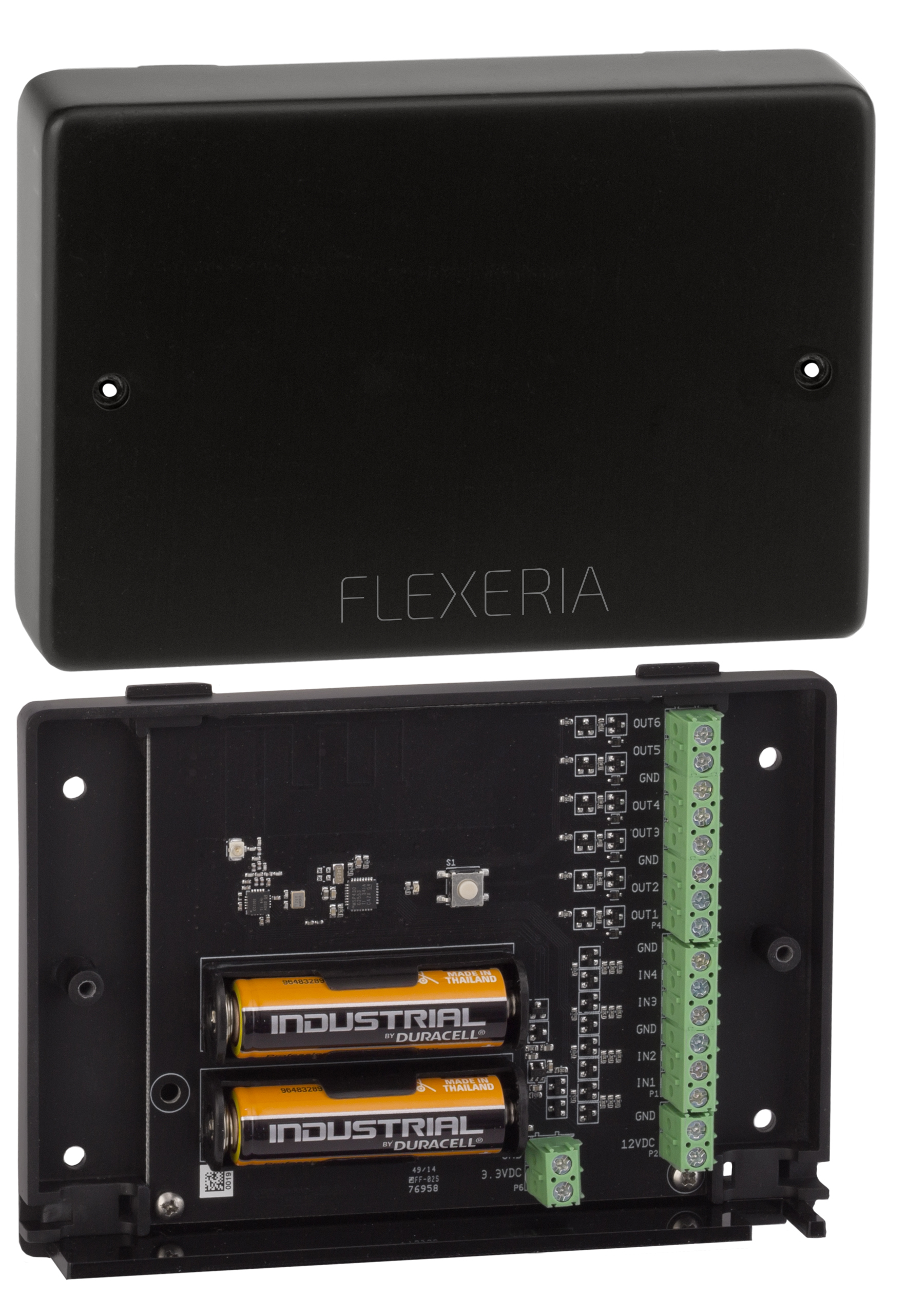 De Flexeria communicatie module kan worden gebruikt om op contactbasis te integreren met systemen van derden. Ook kunnen er externe impulsgevers op worden aangesloten, zoals codesloten, paslezers en drukknoppen om zo draadloos te communiceren met andere Flexeria producten. Daarnaast kan via deze module bijvoorbeeld de batterijstatus van de motorcilinder, oplegslot, kettingdeuropener of deurcontroller worden doorgegeven.
