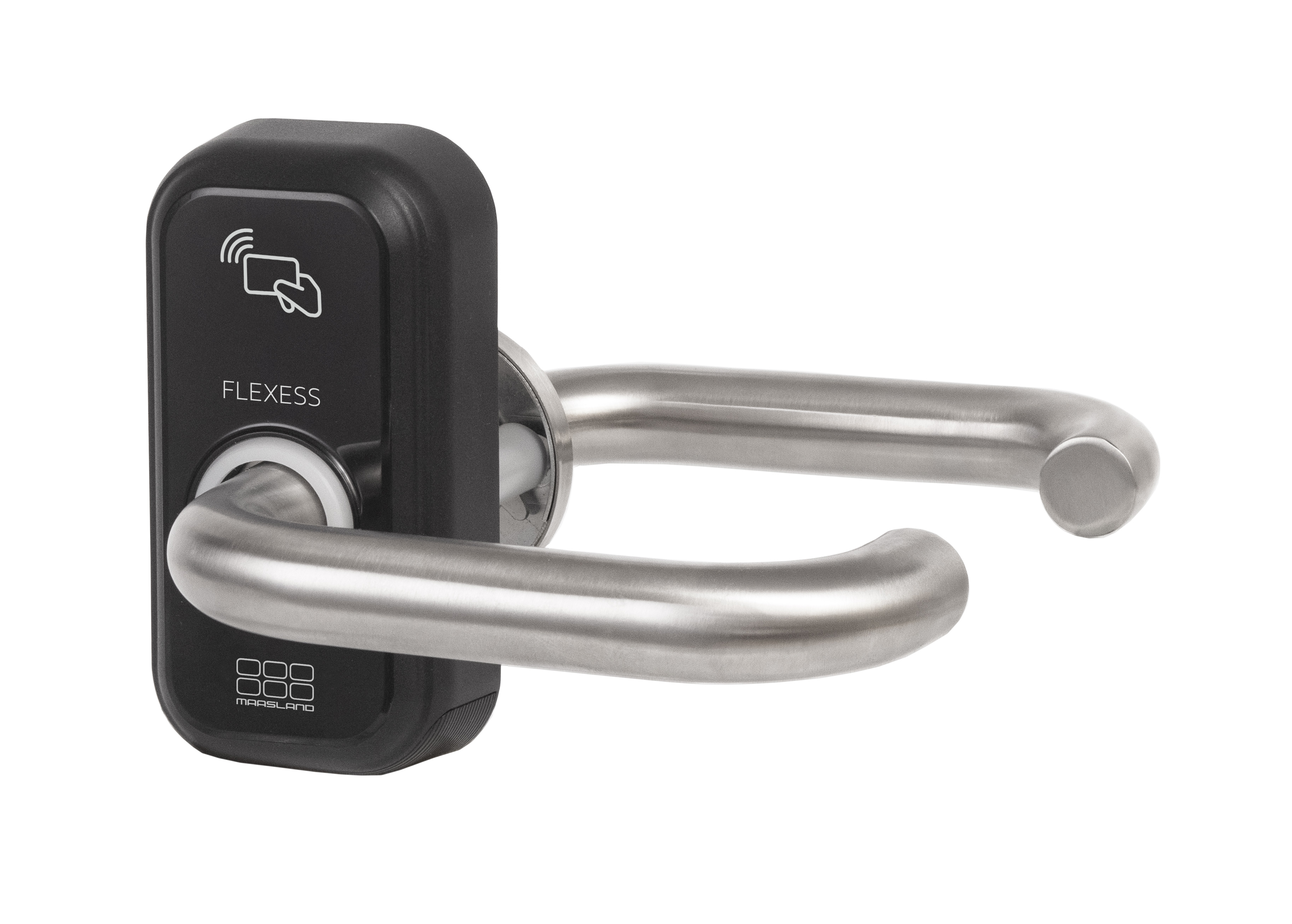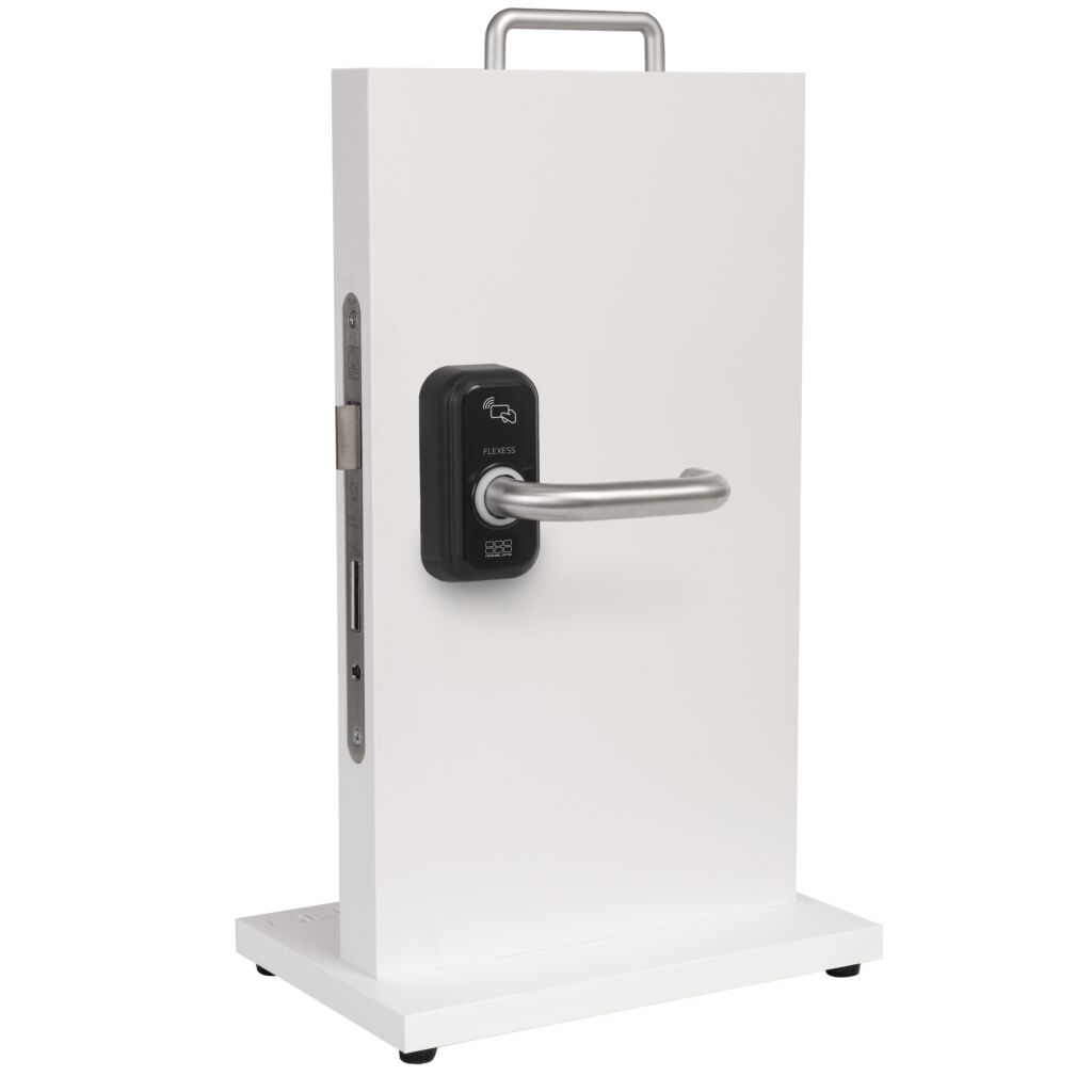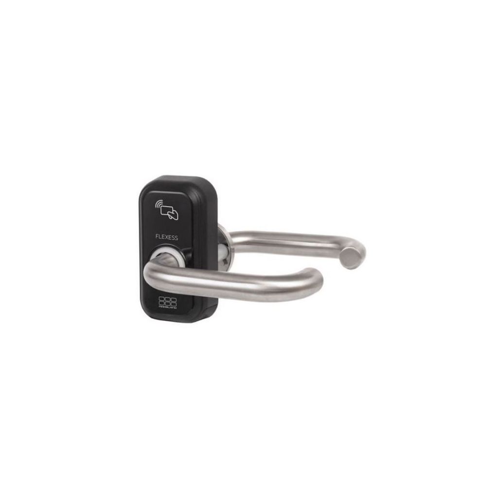 Flexess Aero Intra is een kaartleesbeslag dat eenvoudig op mechanische sloten kan worden gemonteerd. Flexess Aero Intra werkt op batterijen dus bekabeling is niet nodig. Bediening via MIFARE® kaarten/tags. Programmering is eenvoudig en kan zonder extra apparatuur. De kruk aan de binnenzijde is altijd vrij te bedienen. Flexess Aero Intra is voorzien van geluidsindicatie en statusverlichting. Door de separaat te plaatsen cilinderrozetten en eurprofielcilinder is de deur ook altijd met de sleutel te openen.