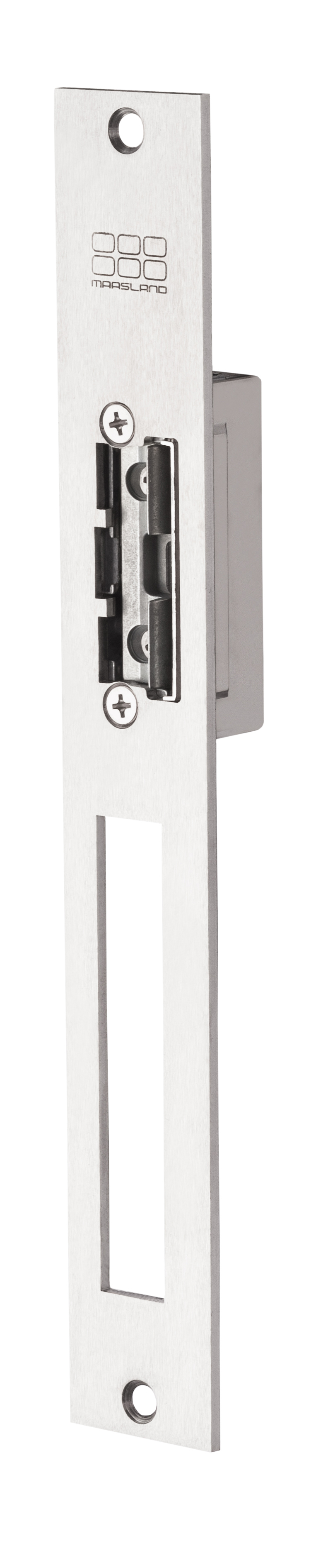 Elektrische deuropener met geïntegreerde schootgeleider en universele spoel die in het kozijn, tegenover de dagschoot van een mechanisch slot wordt ingebouwd, om deze te vergrendelen of te ontgrendelen. De schootgeleider duwt de dagschoot uit de schootvanger van de elektrische deuropener zodat, zonder lelijke uitsparingen in het kozijn, de deur kan worden ontgrendeld. De lange brede sluitplaat is geschikt voor stalen/aluminium kozijnen en heeft een uitsparing voor de nachtschoot, zodat deze mechanisch kan worden vergrendeld.