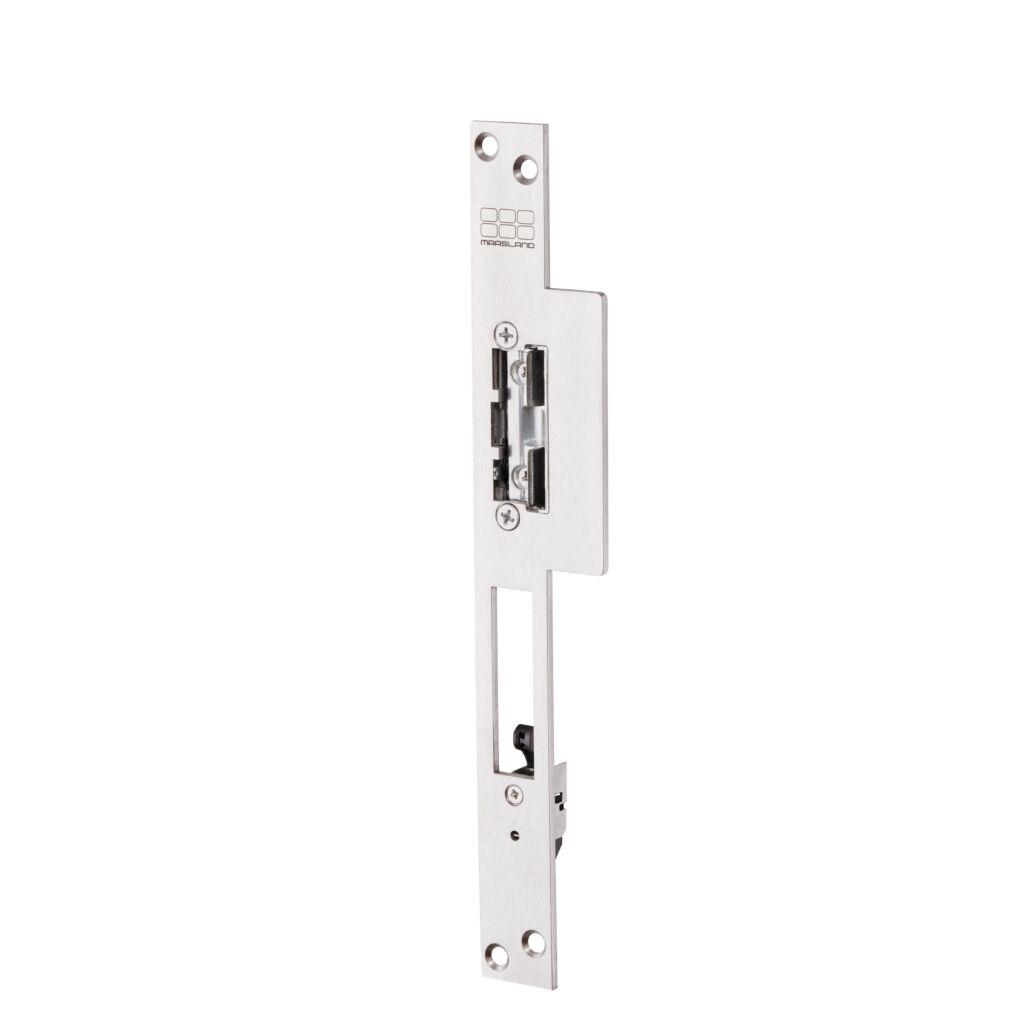 Elektrische deuropener met geïntegreerde schootgeleider en universele spoel die in het kozijn, tegenover de dagschoot van een mechanisch slot wordt ingebouwd, om deze te vergrendelen of te ontgrendelen. De schootgeleider duwt de dagschoot uit de schootvanger van de elektrische deuropener zodat, zonder lelijke uitsparingen in het kozijn, de deur kan worden ontgrendeld. De lange lipsluitplaat is geschikt voor houten kozijnen en heeft een uitsparing voor de nachtschoot, zodat deze mechanisch kan worden vergrendeld. Tevens is de sluitplaat voorzien van een nachtschootsignalering. Hiermee kan men zien of de deur op het nachtslot is gedraaid of kan bijvoorbeeld het alarm worden ingeschakeld.