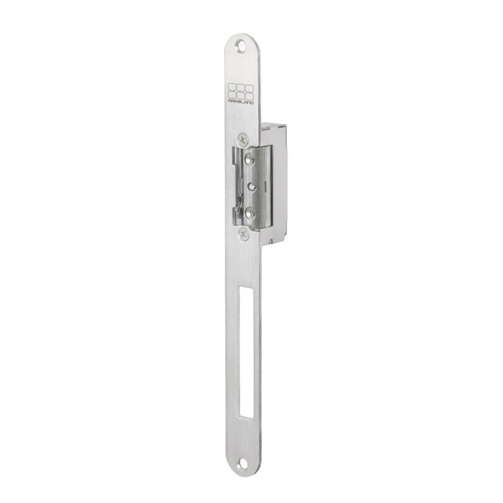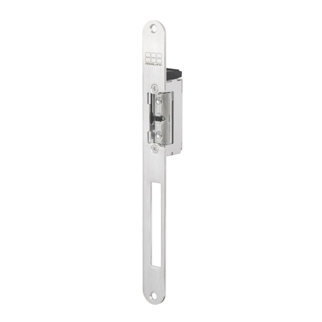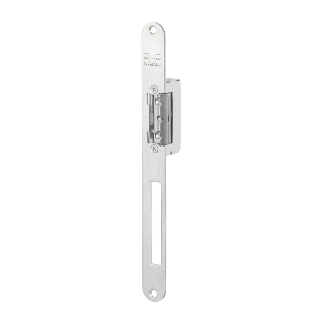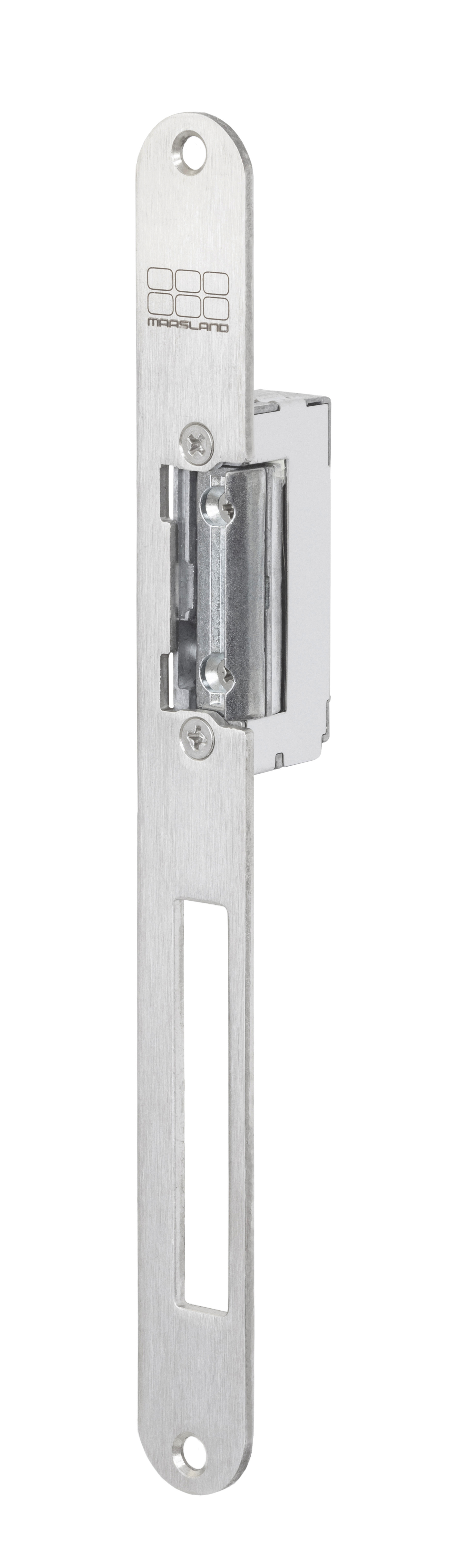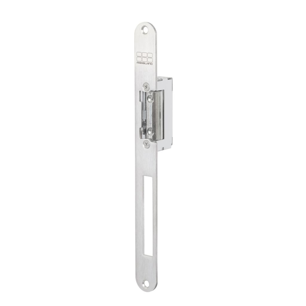 Inbouw elektrische deuropener voorzien van radiale 2,5 mm verstelbare schootvanger welke binnen de behuizing draait. De behuizing is slechts 16 mm breed wat er voor zorgt dat de uitsparing in het kozijn minimaal is en geschikt is voor alle type kozijnen zoals aluminium, hout en kunststof. De deuropener wordt in het kozijn tegenover de dagschoot van een mechanisch slot ingebouwd om deze te vergrendelen of te ontgrendelen. De lange sluitplaat heeft een uitsparing voor de nachtschoot, zodat deze mechanisch kan worden vergrendeld. Tevens is de sluitplaat voorzien van afgeronde hoeken voor eenvoudige montage na het frezen.