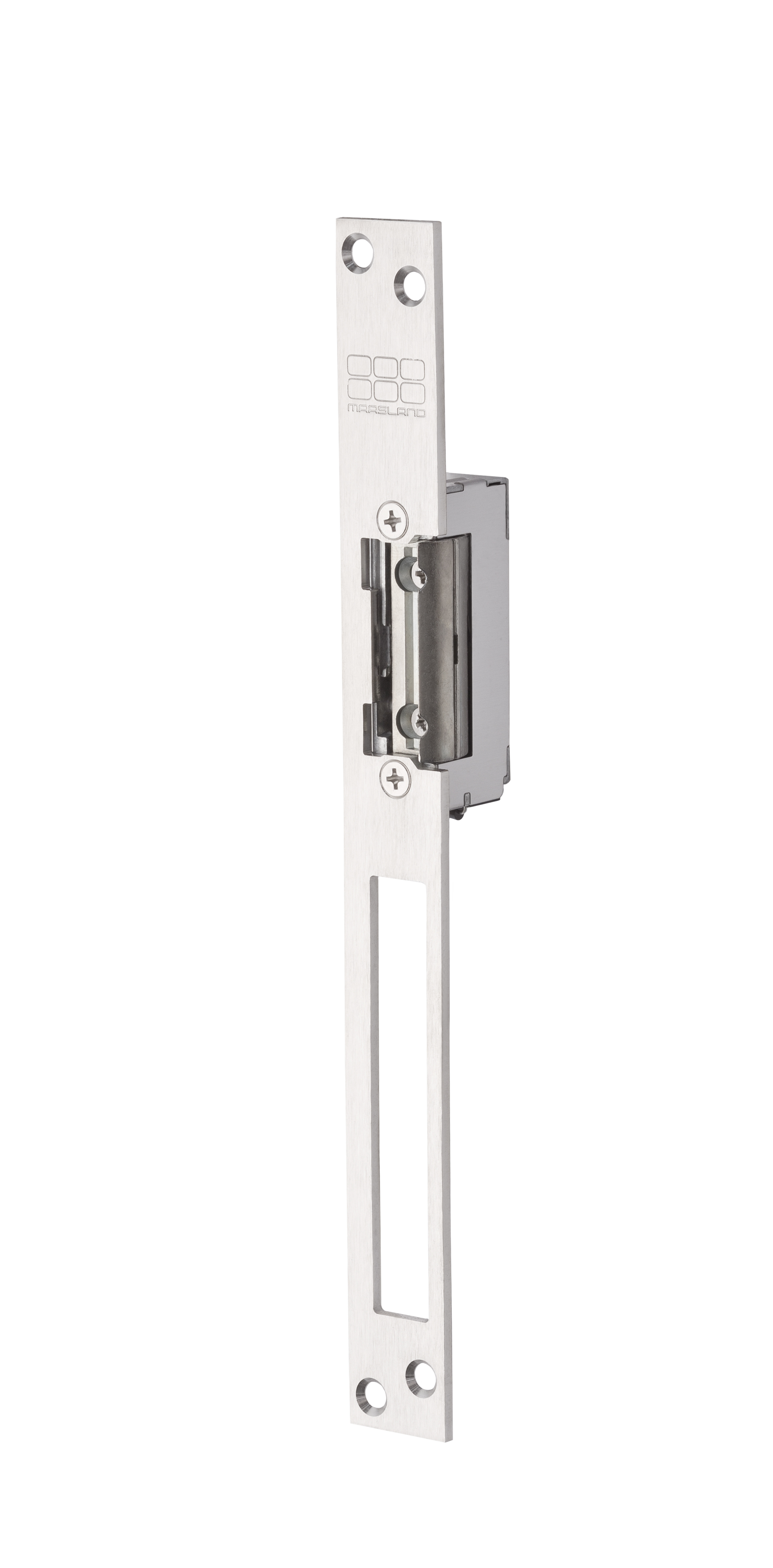 Inbouw elektrische deuropener voorzien van radiale 2,5 mm verstelbare schootvanger welke binnen de behuizing draait. De behuizing is slechts 16 mm breed wat er voor zorgt dat de uitsparing in het kozijn minimaal is en geschikt is voor alle type kozijnen zoals aluminium, hout en kunststof. De deuropener wordt in het kozijn tegenover de dagschoot van een mechanisch slot ingebouwd om deze te vergrendelen of te ontgrendelen. De lange sluitplaat heeft een uitsparing voor de nachtschoot, zodat deze mechanisch kan worden vergrendeld.