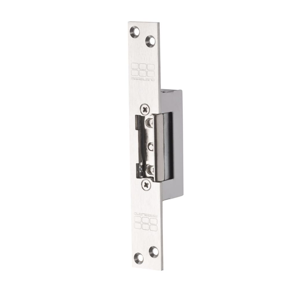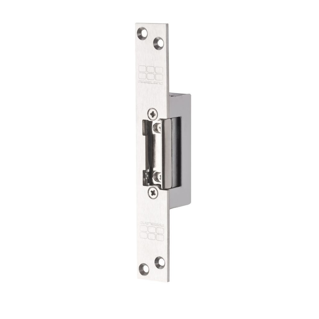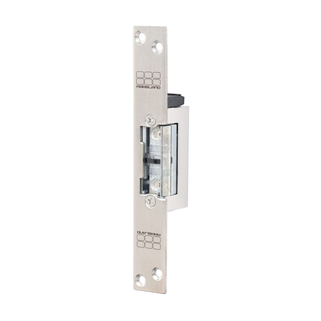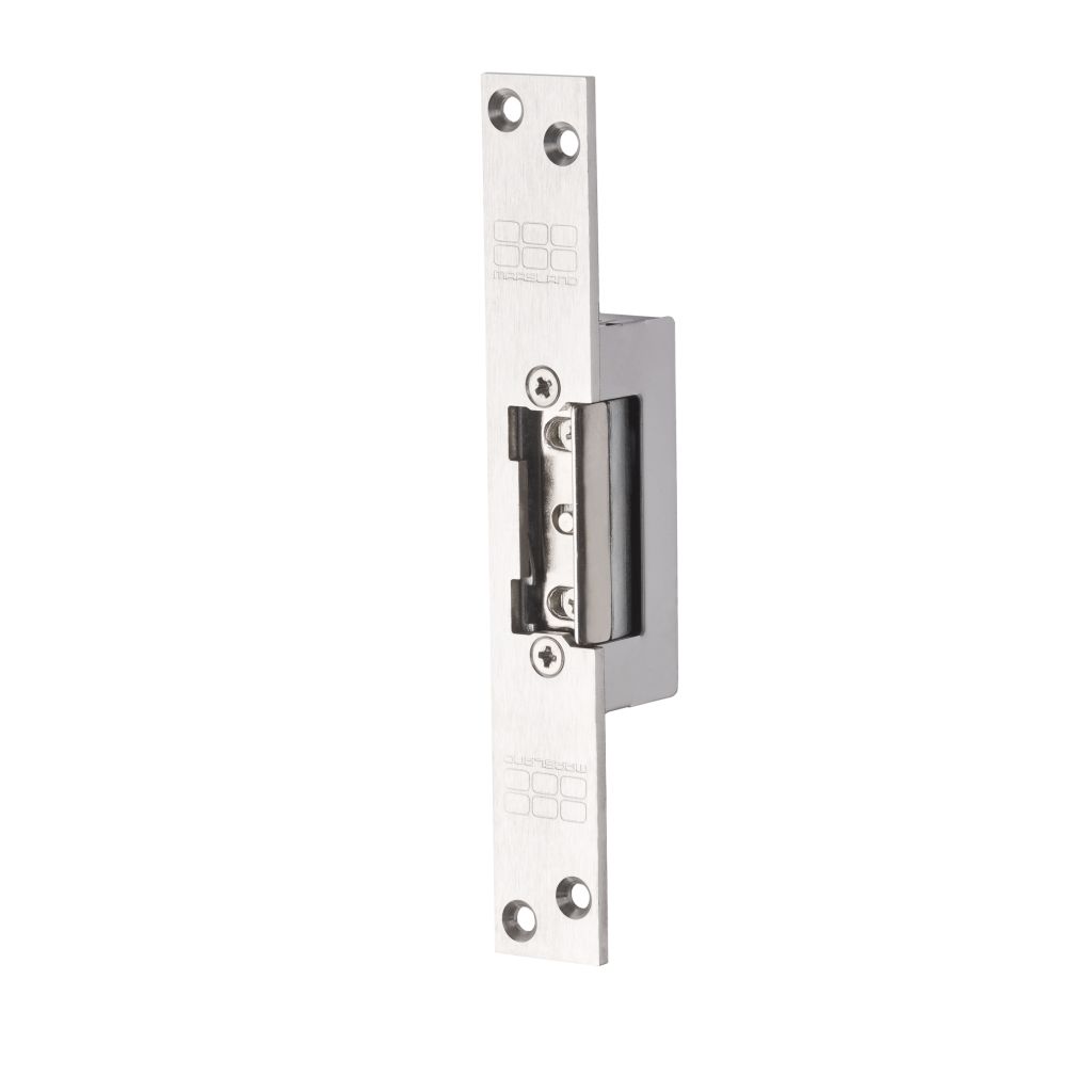 Inbouw elektrische deuropener voorzien van axiale 4 mm verstelbare schootvanger welke buiten de behuizing draait. De deuropener wordt in het kozijn tegenover de dagschoot van een mechanisch slot ingebouwd om deze te vergrendelen of te ontgrendelen.