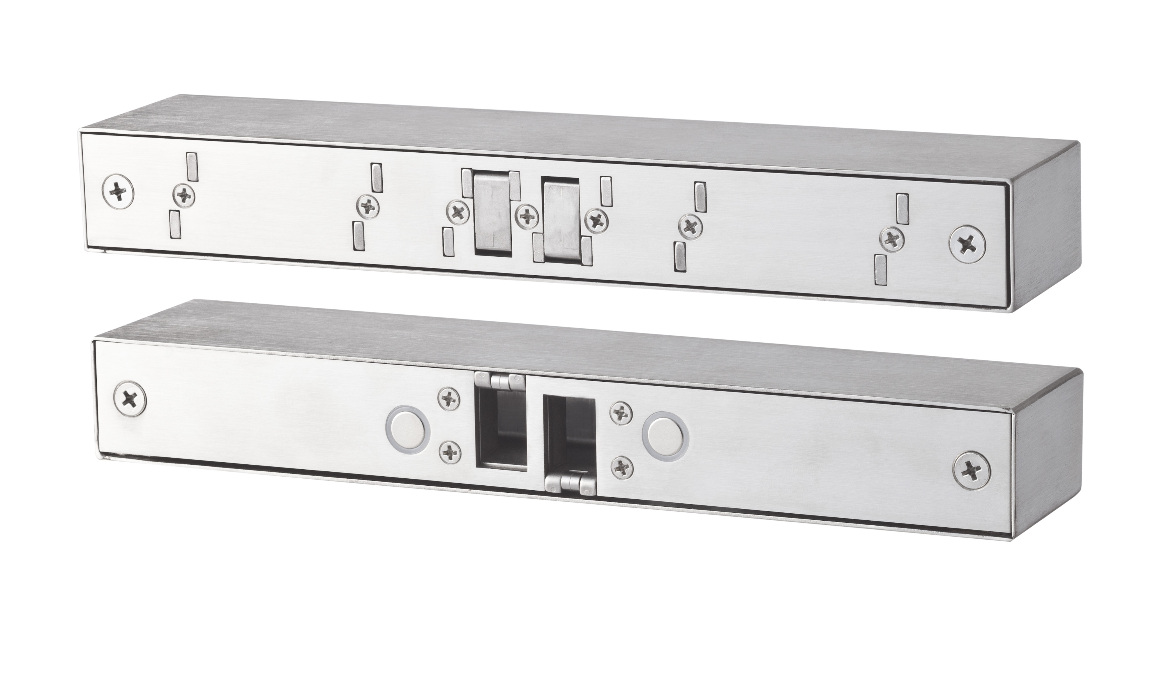 Deze elektrische sloten kunnen via een toegangscontrolesysteem of andere elektrische impulsgever worden ontgrendeld. Er is slechts één model voor alle deursituaties dus geschikt voor links- en rechtsdraaiende deuren, horizontaal en verticaal te monteren, 12 en 24V DC, arbeidsstroom en ruststroom en standaard voorzien van dubbele signalering. De sterke rvs schoot is niet terug te duwen als de deur is vergrendeld (niet te “flipperen”), zorgt voor een houdkracht van 10.000 N, opent onder 6.000 N zijdelingse druk en trekt tot 8 mm automatisch de deur dicht. Geschikt voor doordraaiende glazen deuren.
